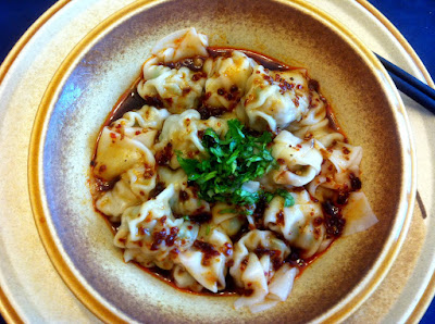 Wonton - free range extra lean ground pork, green onion, ginger, egg, corn starch, chicken broth, salt, white pepper, coriander, chili oil, Szuchuan spicy sauce. |